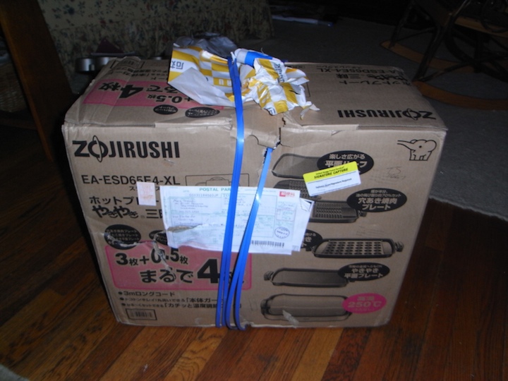November 28 - Electric grill arrives (shipping from Japan was twice as much as cost!) - the box - takoyaki plate