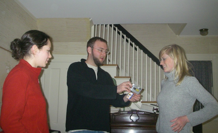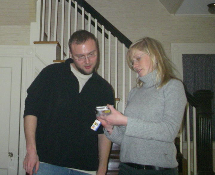 November 24 - house guest Melina Schuh; Melina shows her new digital camera to Rachael and Tom; Tom & Melina