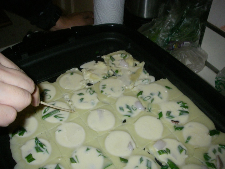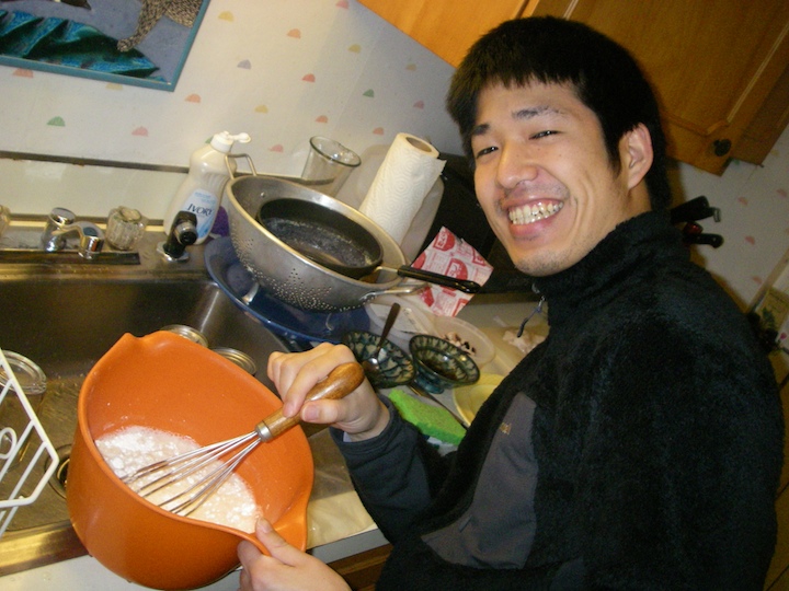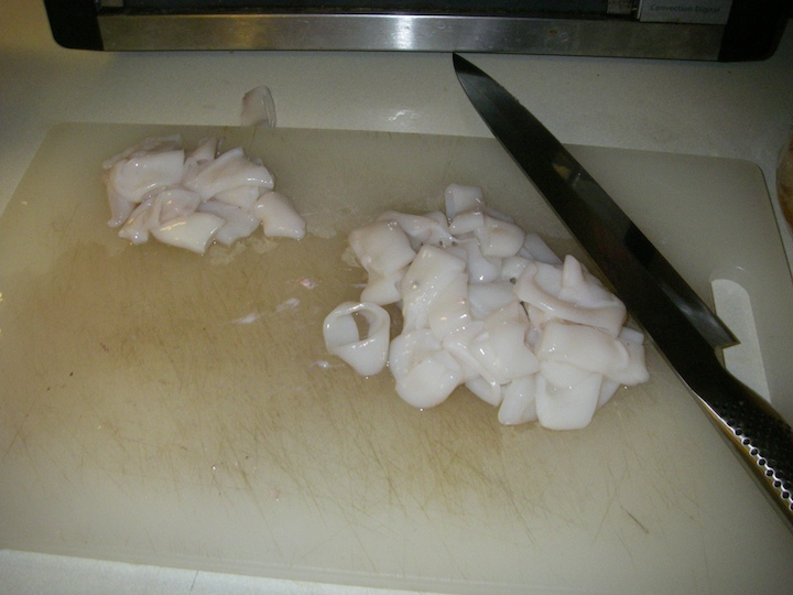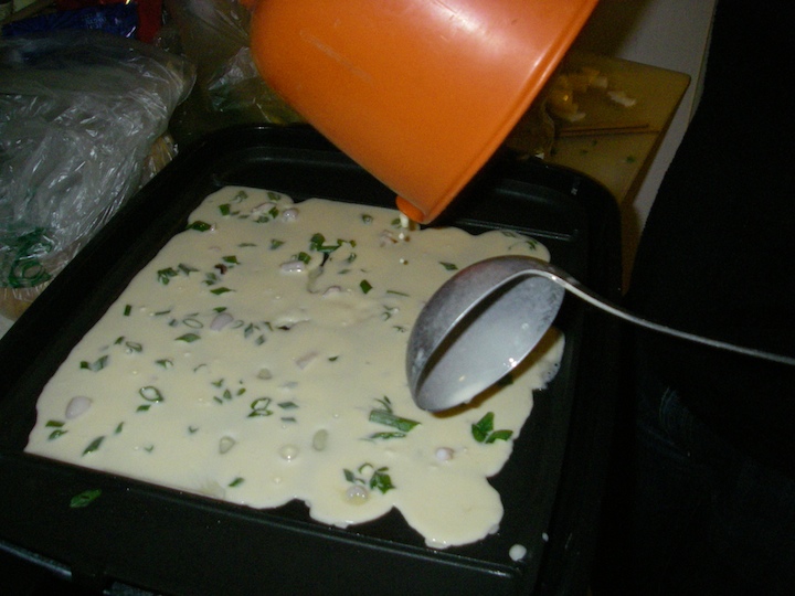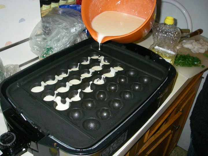 Make the batter - for 30 takoyaki, we used 1 2/3 cup flour, 2 1/2 cup water,