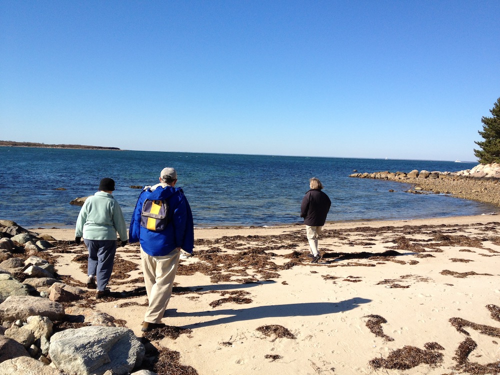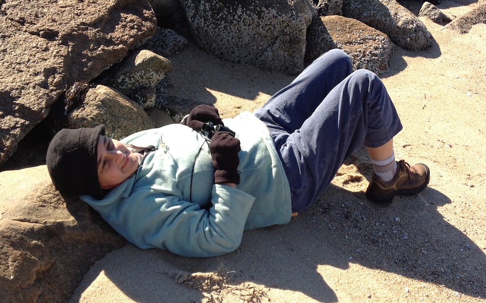 Nov 6 - a visit to Woods Hole -on the beach with Sid & Signhild - resting - Sid - Guy comes to WH for the first time!