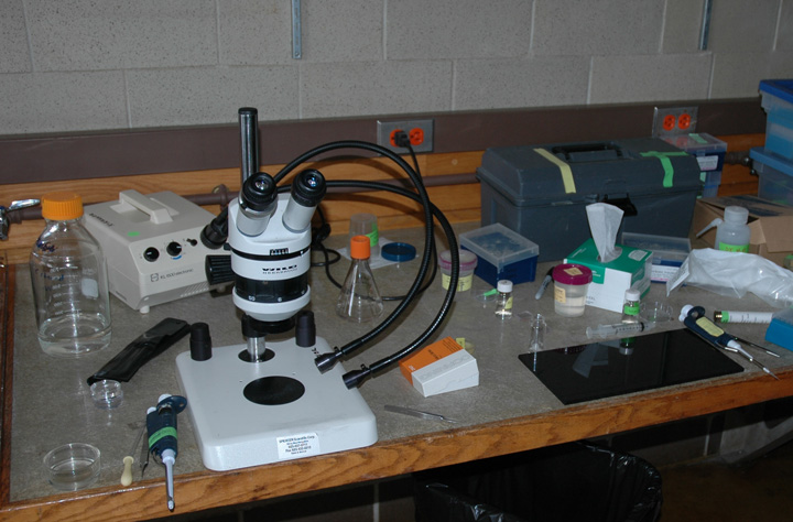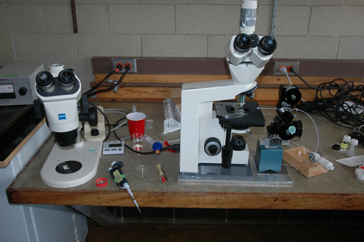 Work area around the injection microscope
