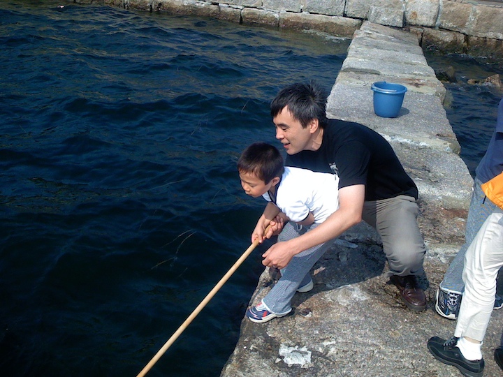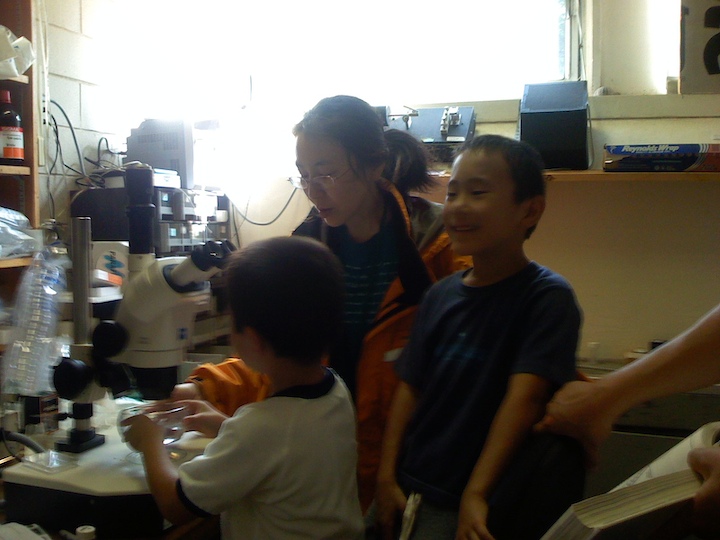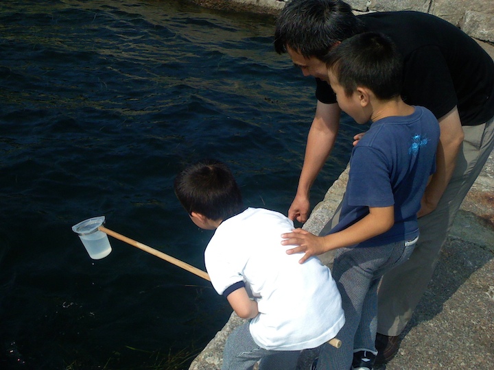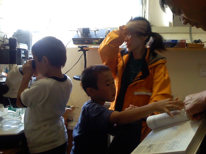Wednesday, August 8 - Kenta and Yuta: at the window -- on the pier collecting ctenophores 1 - 2 -- stereoscope 1 - 2