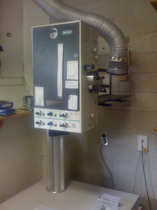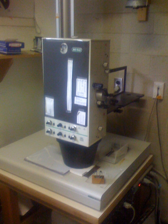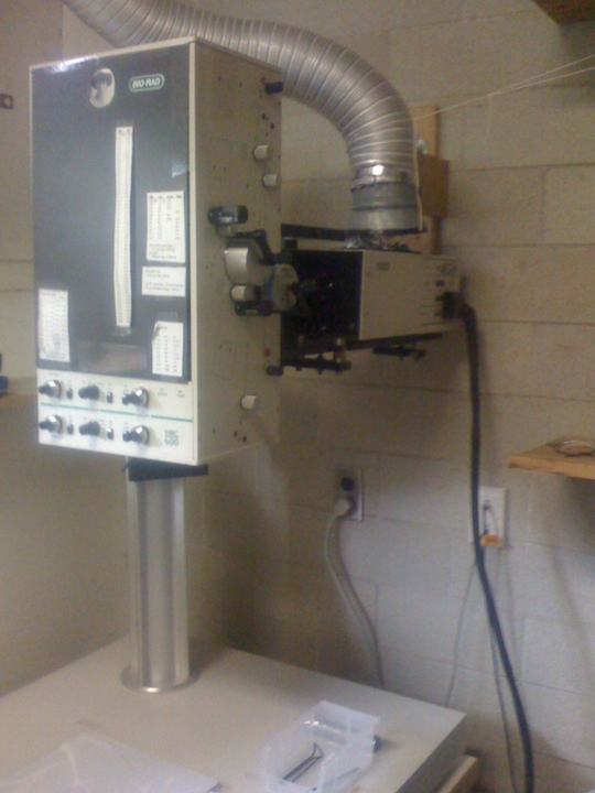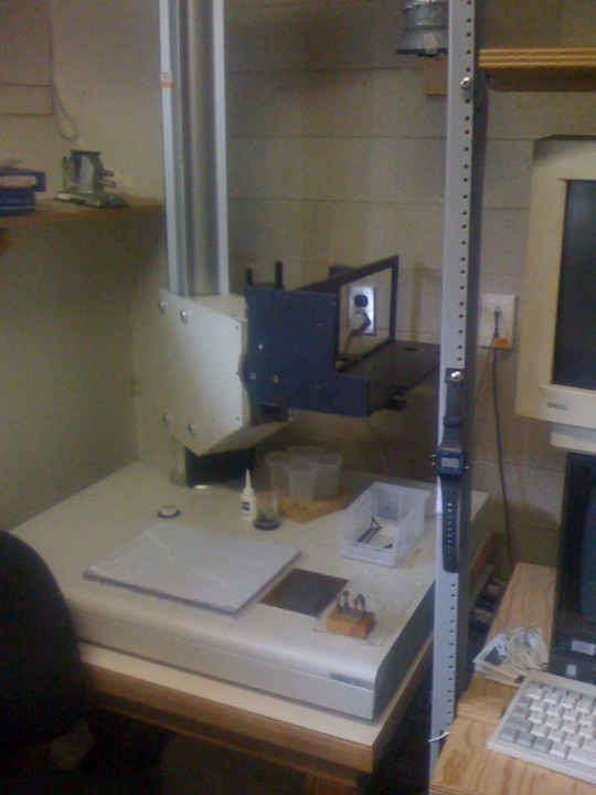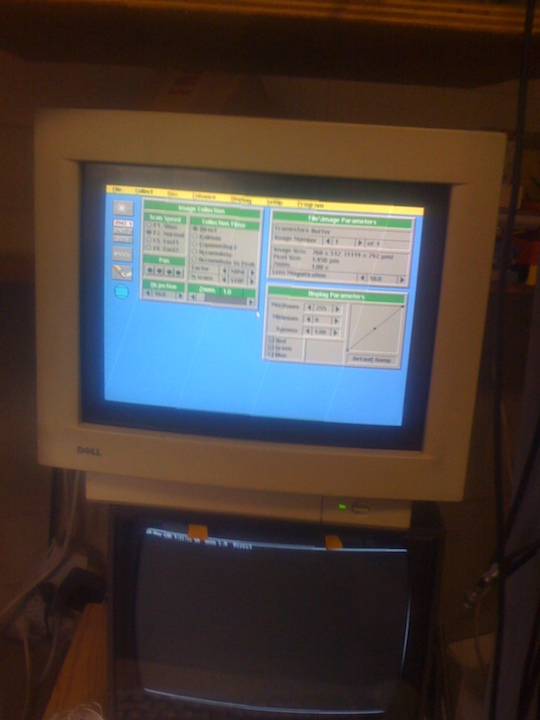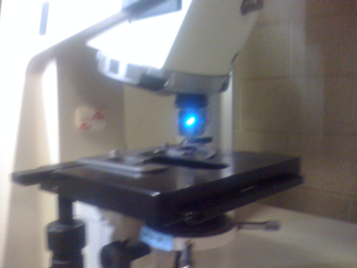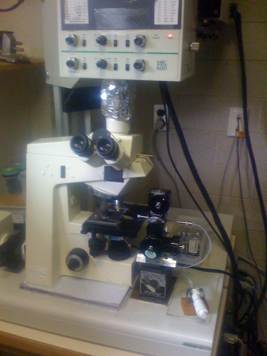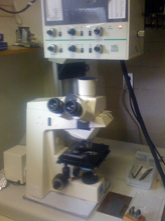 9. Align so that laser goes straight down center of microscope 1 - 2 and a microscope