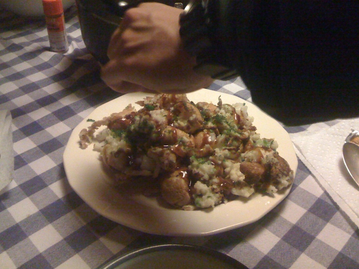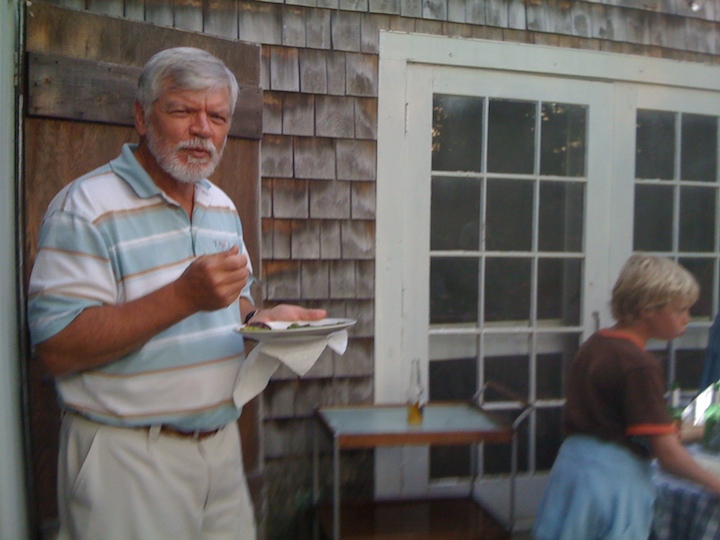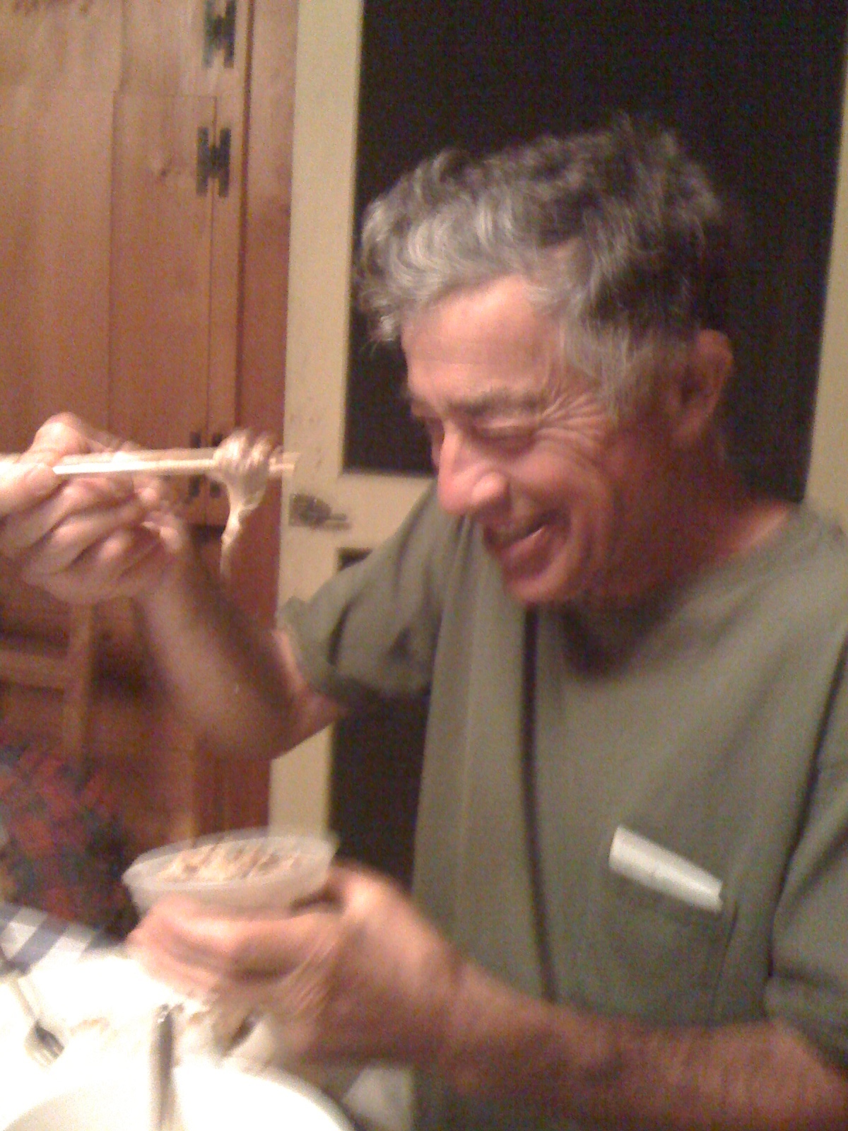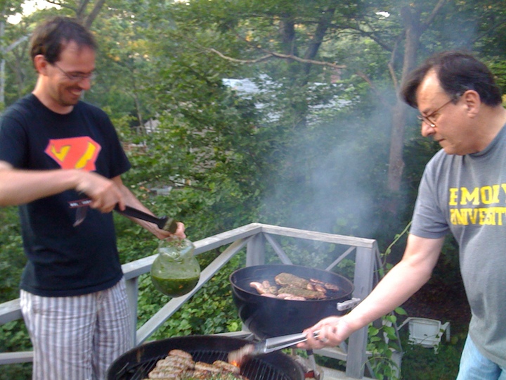 August 1 - Peter y Jorge y BBQ - eating 1- 2 - Art Hand - Maya - best gift to the Hyatt 2009 (from Lara)
