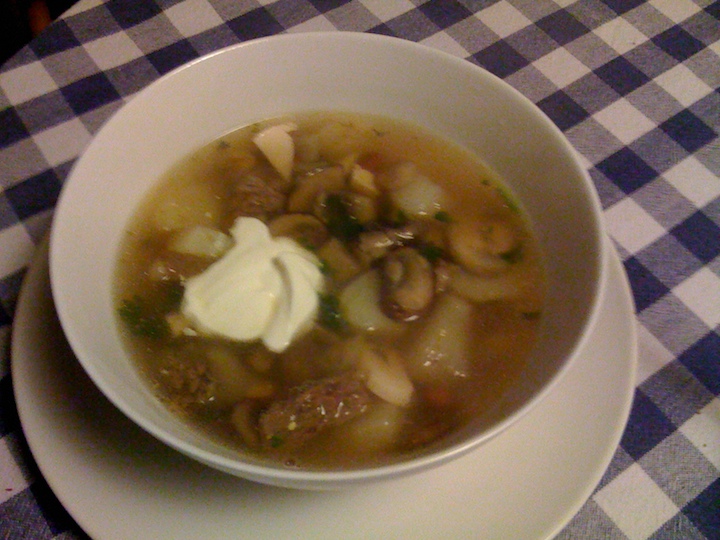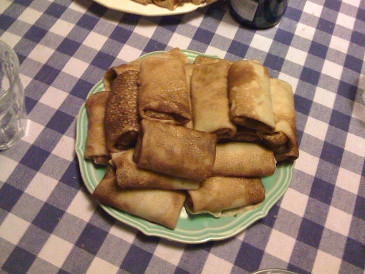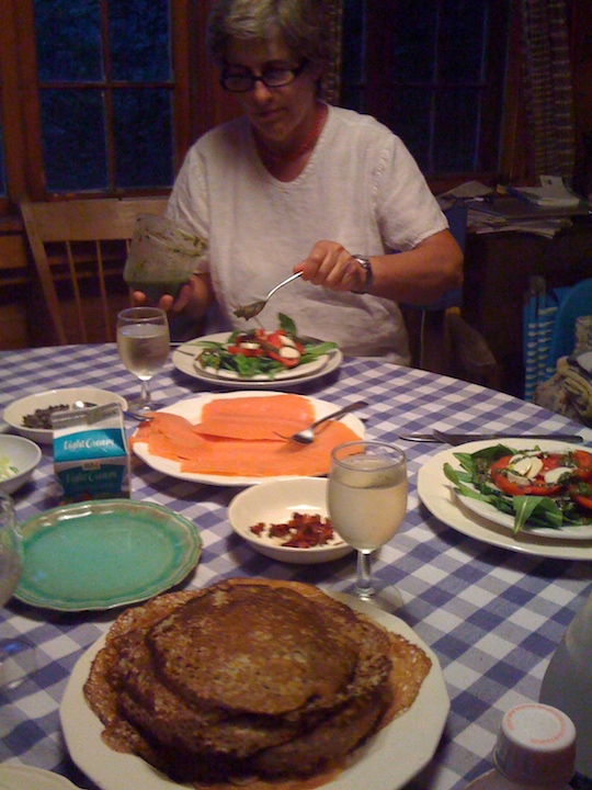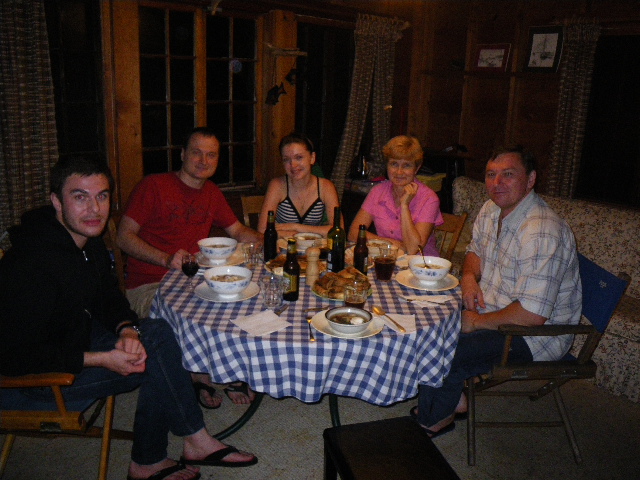 June 26 - dinner: Alexi, Pavel, Ksenia, Olga, Alexi - blinchki - blini - mushroom soup