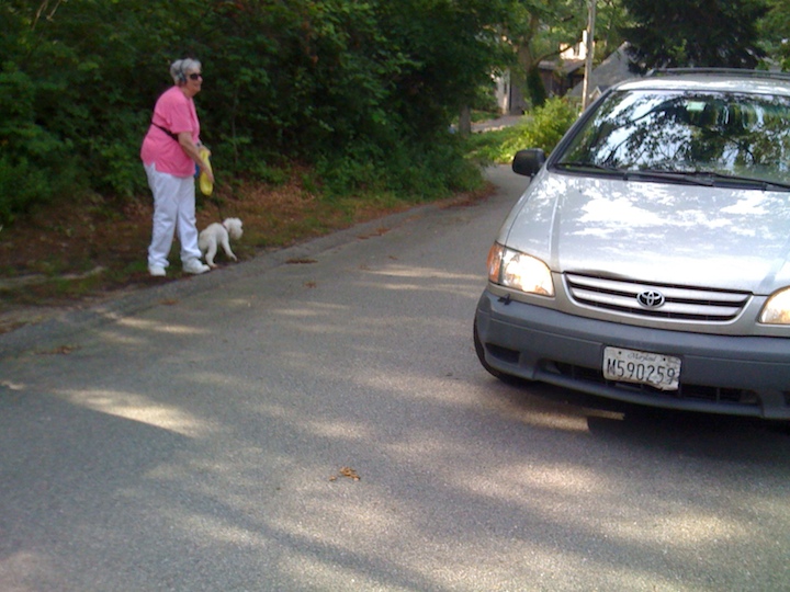 July 23 - woman walking her dog gives her opinion: "I don't care what people say, poodles aren't neurotic!"