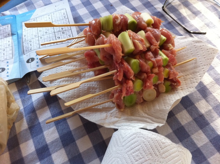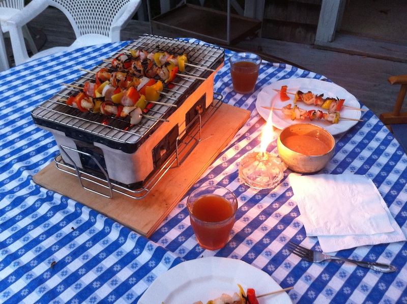 swordfish skewers BBQed with Masashi's shichirin (hibachi