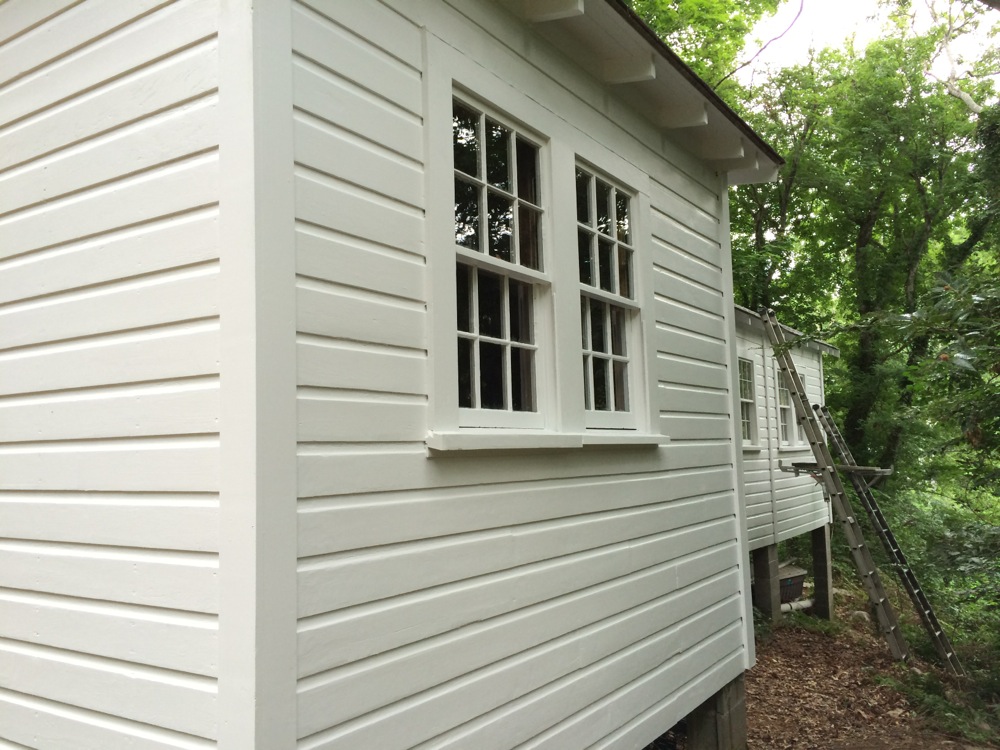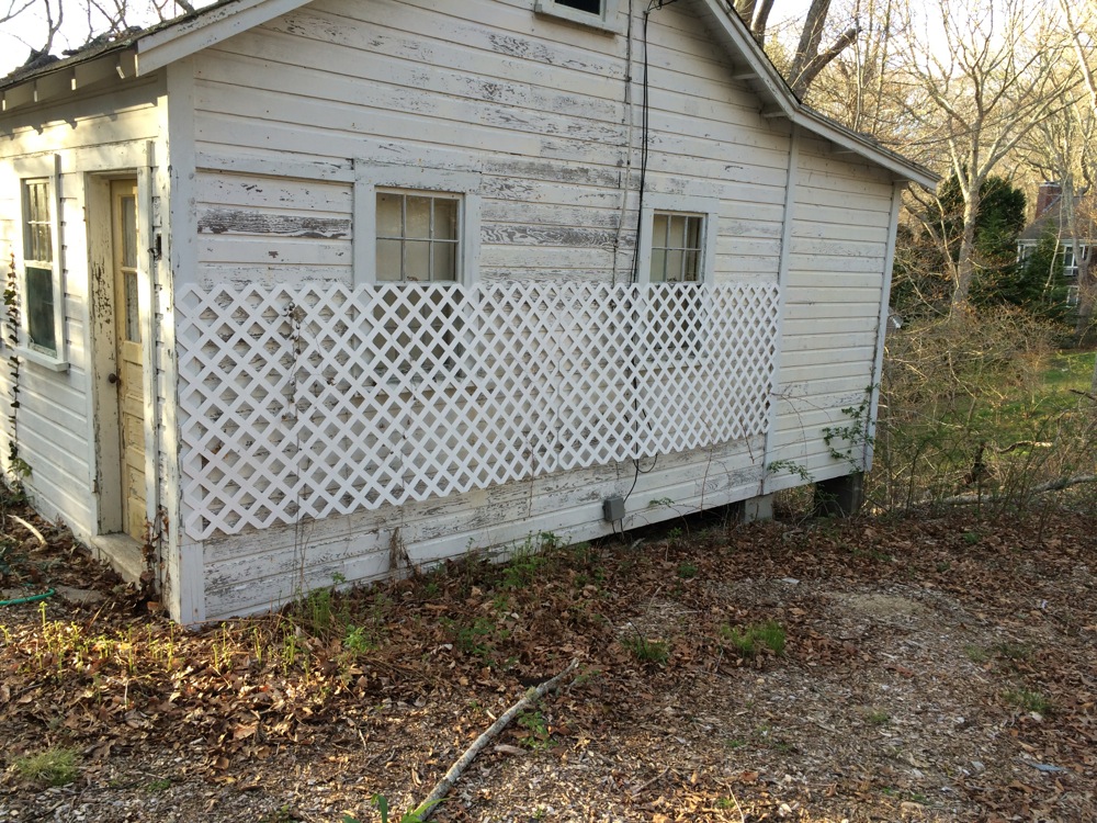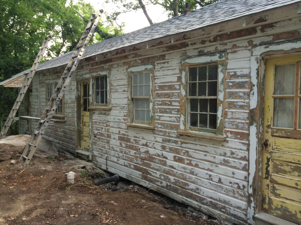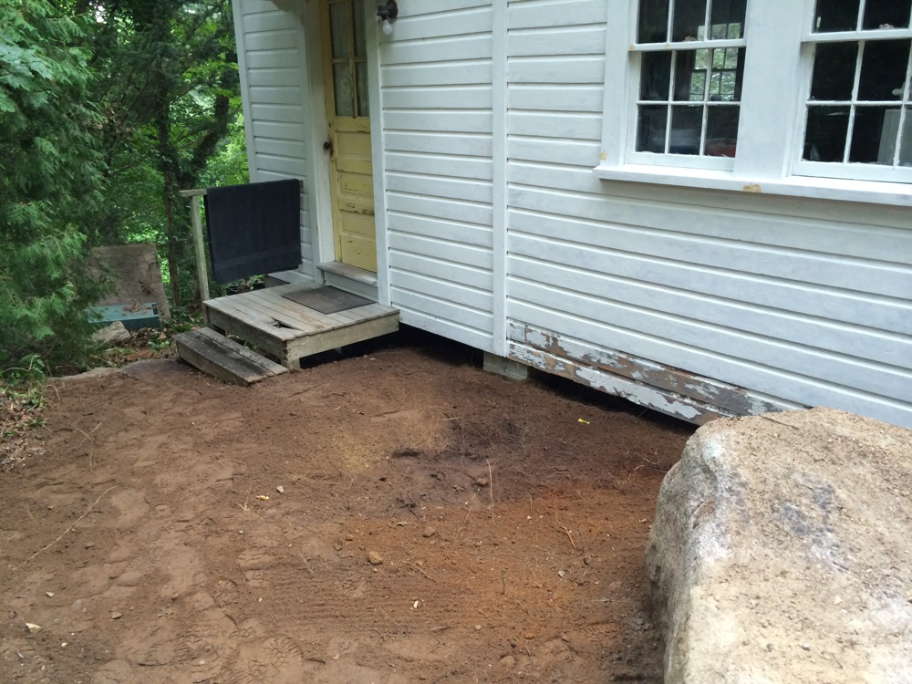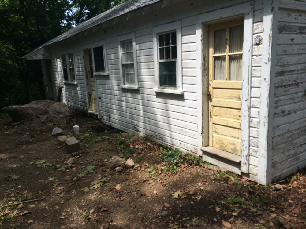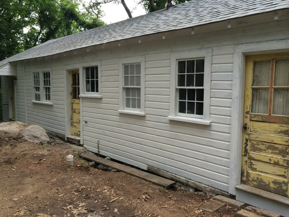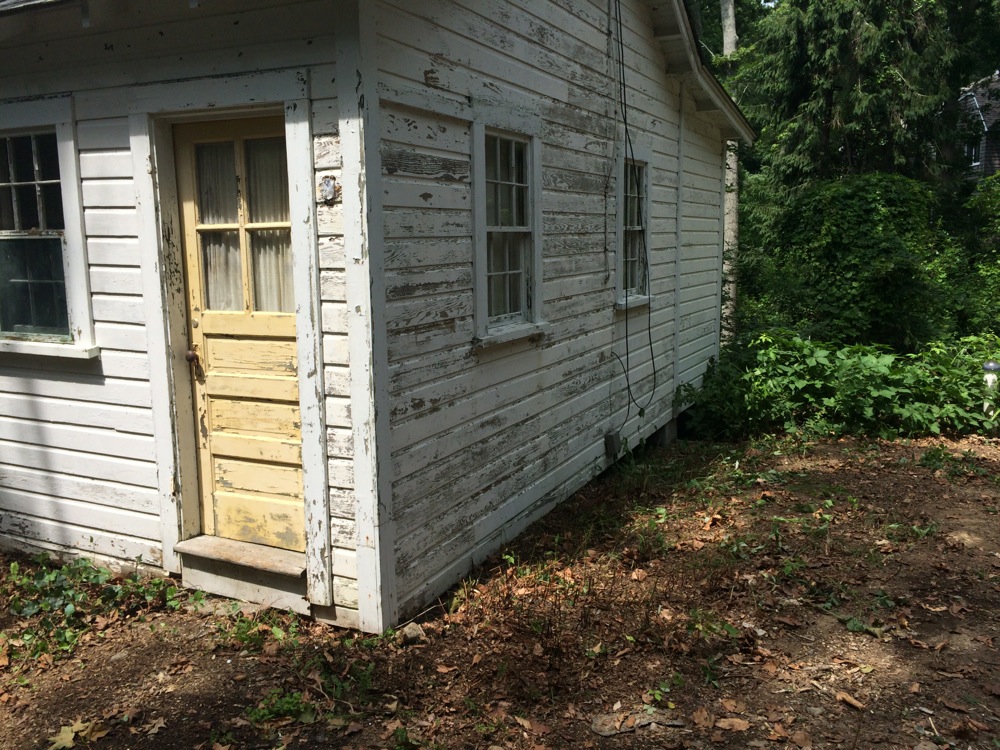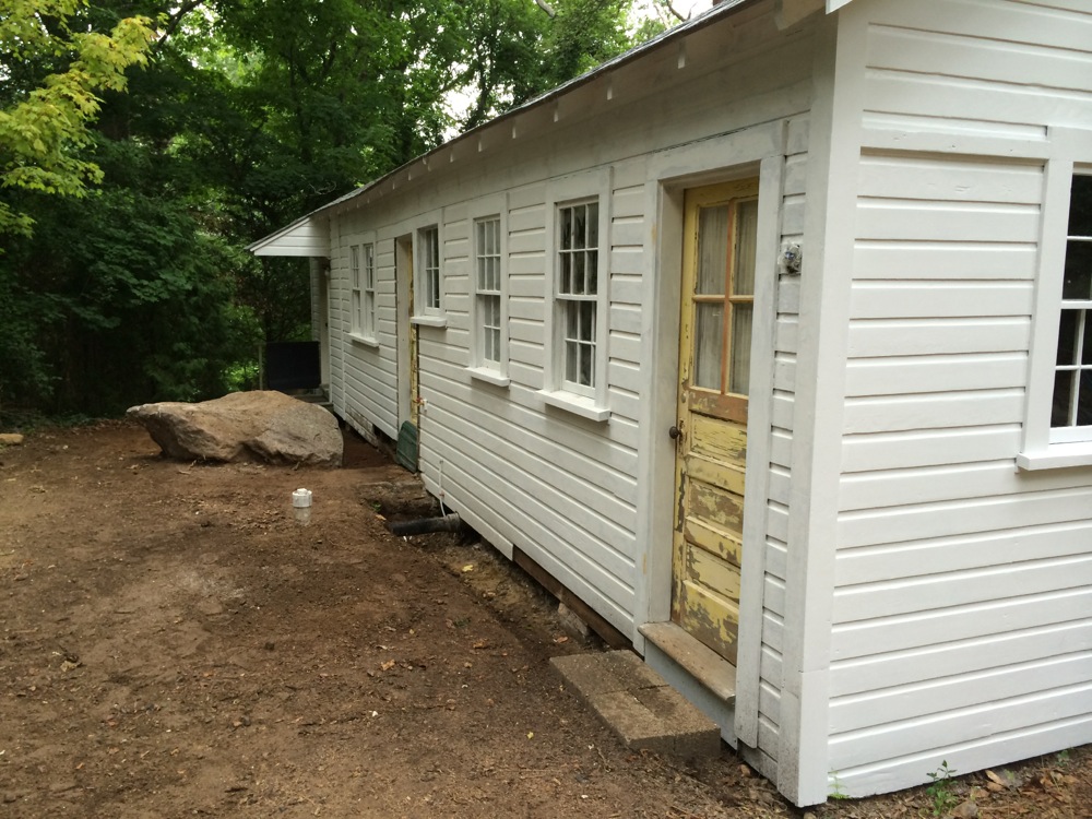 short side painted, front side cleared, main door cleared, new steps to back, back area