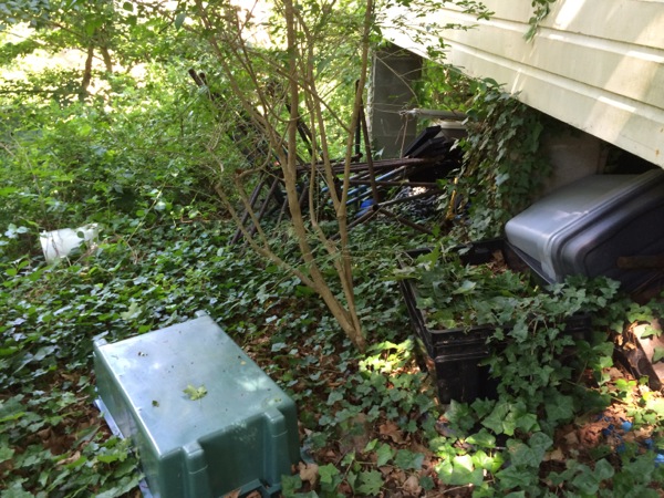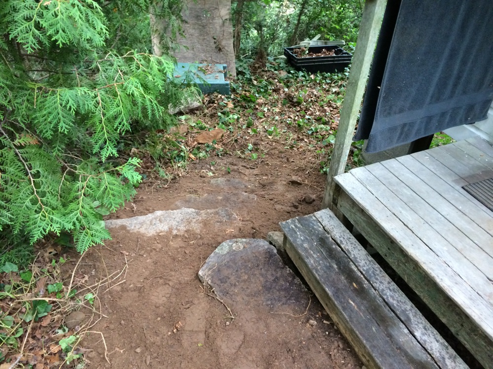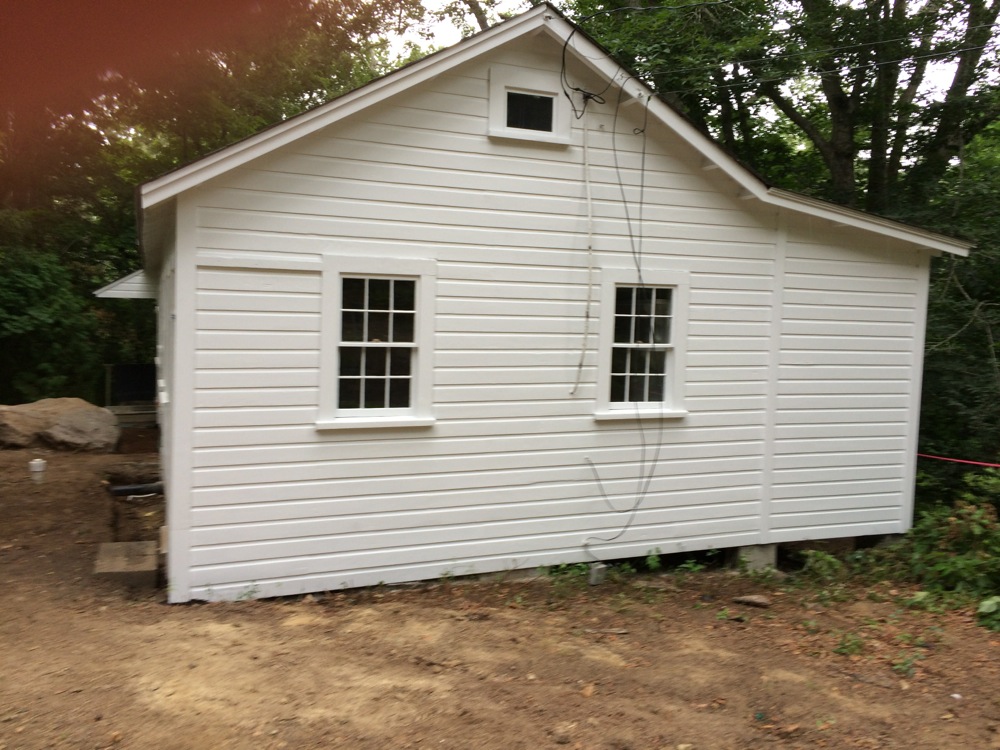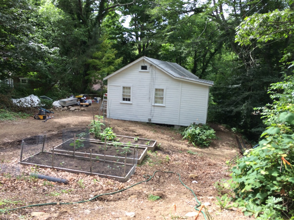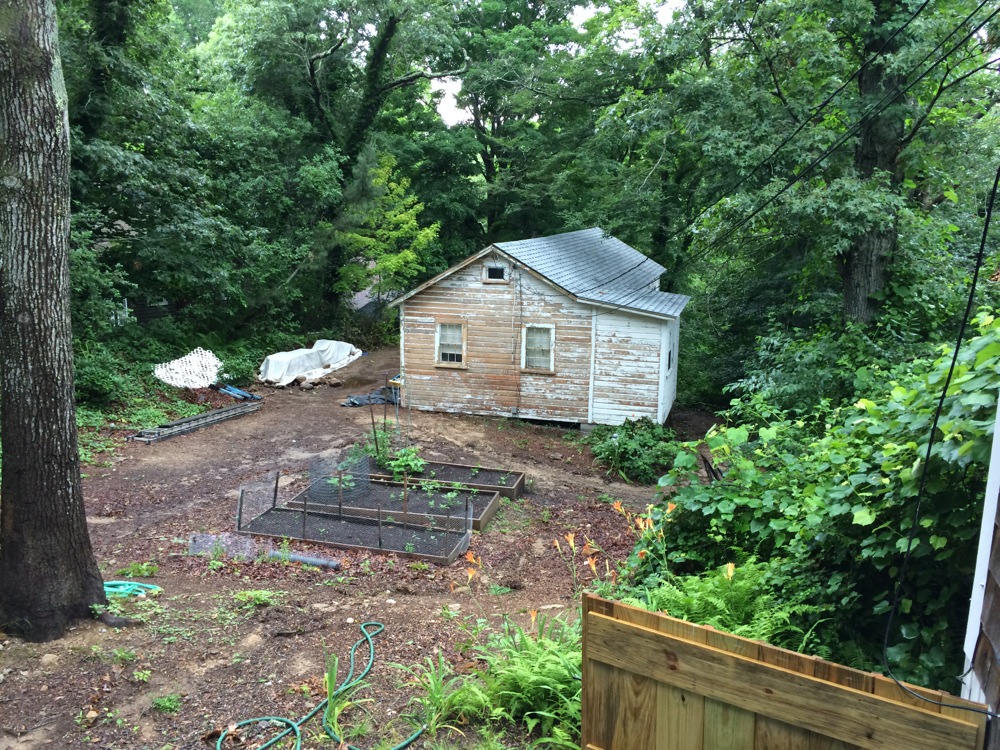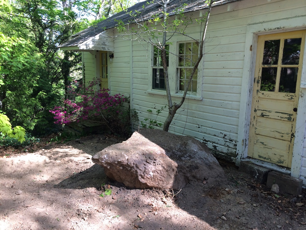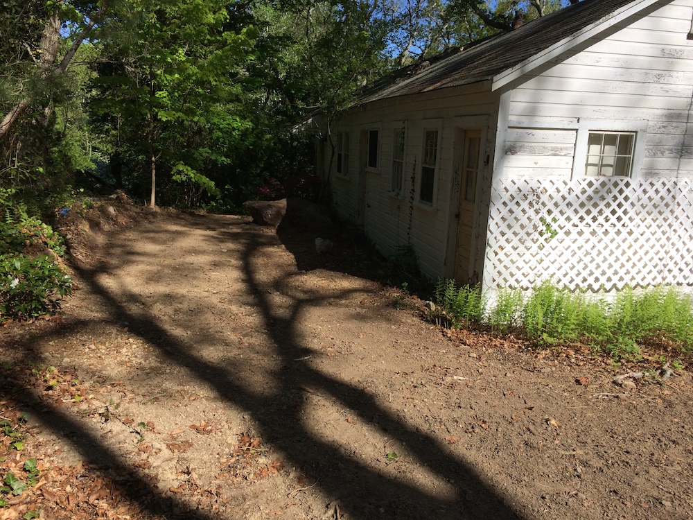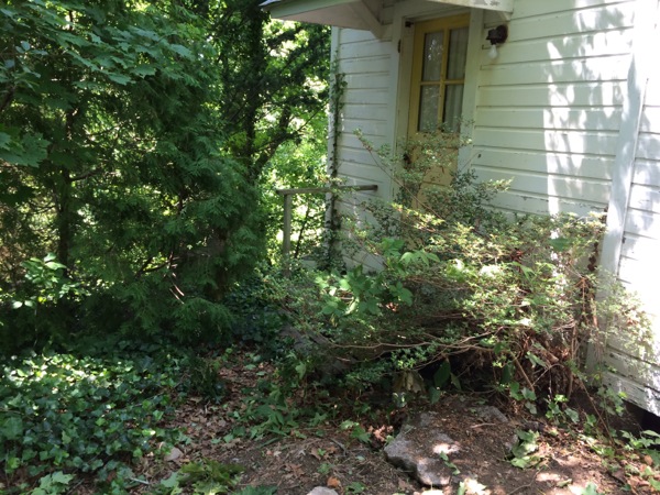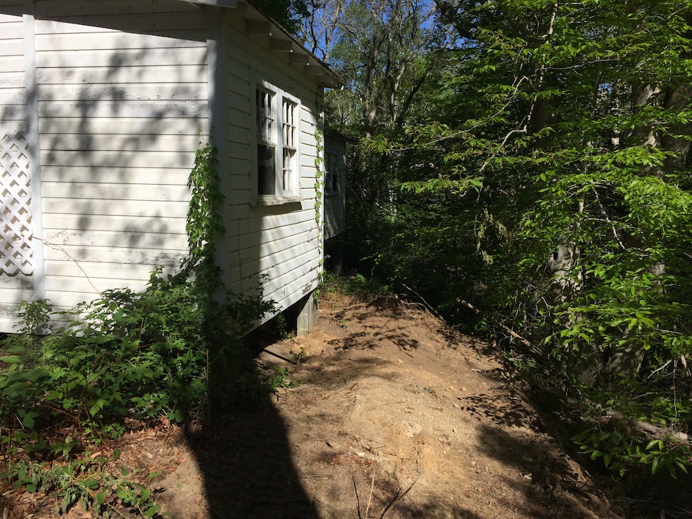 short side painted, front side cleared, main door cleared, new steps to back, back area