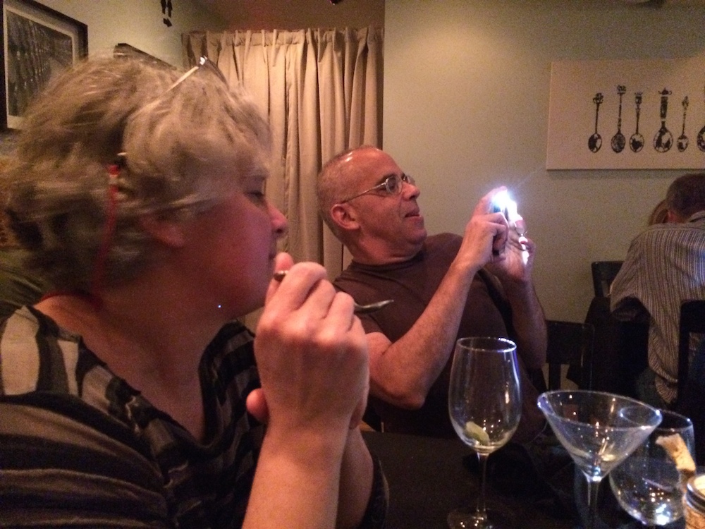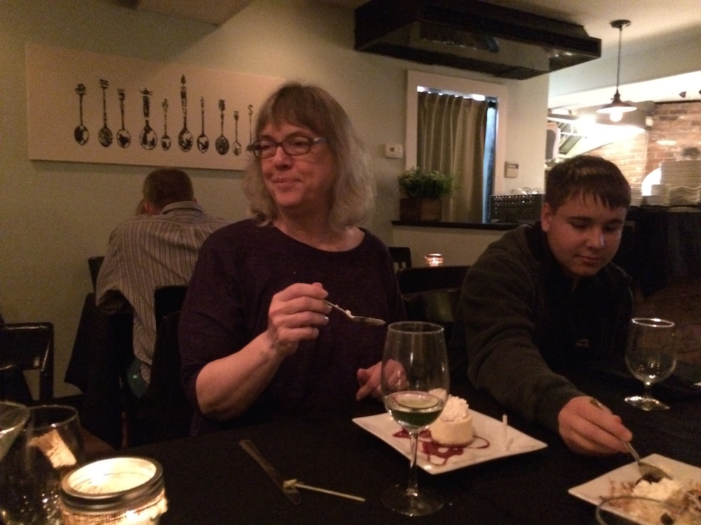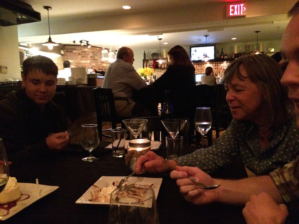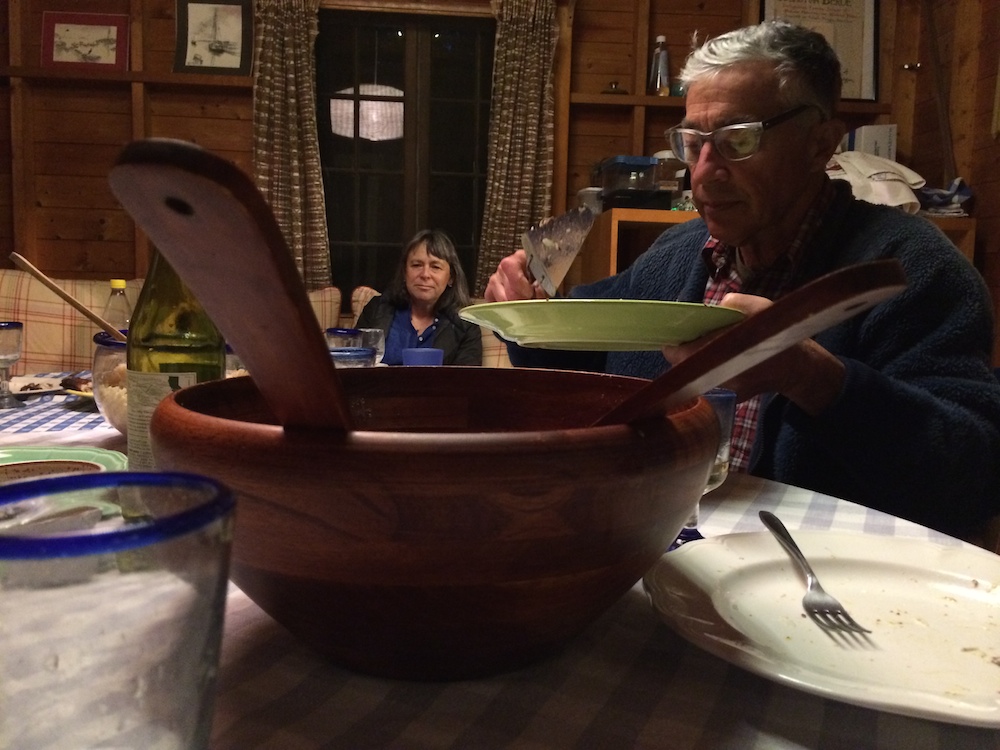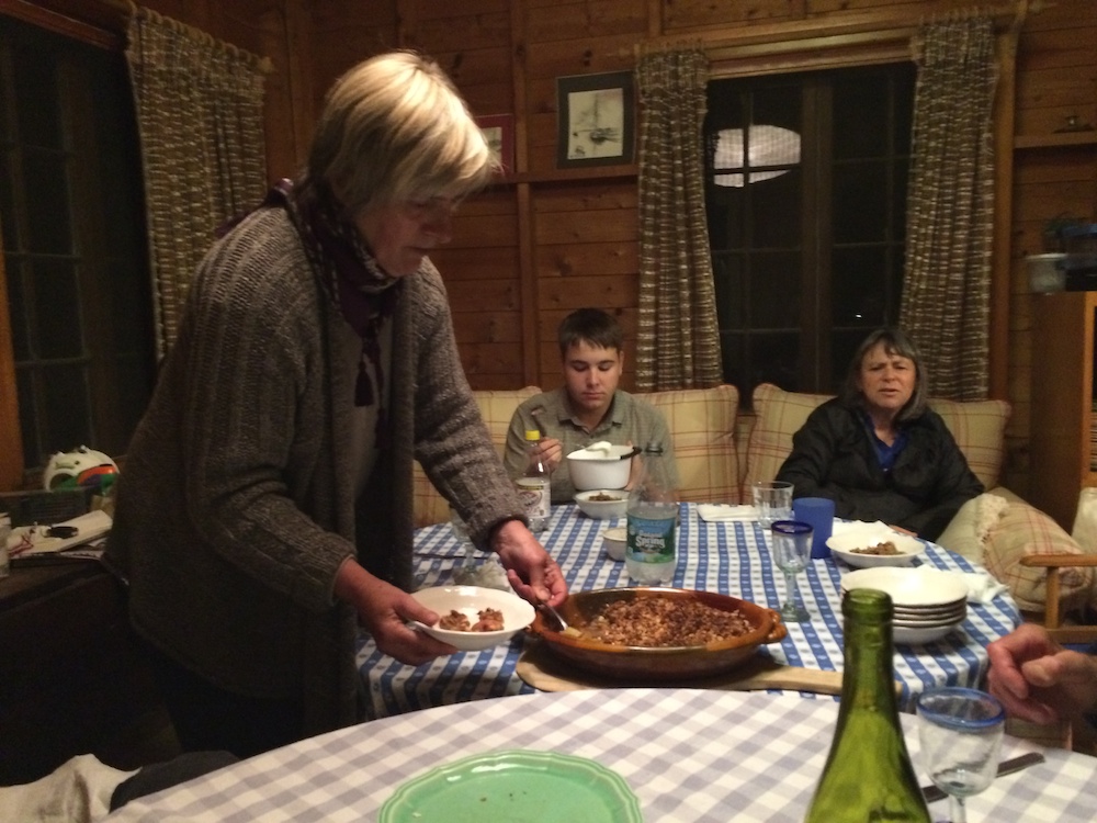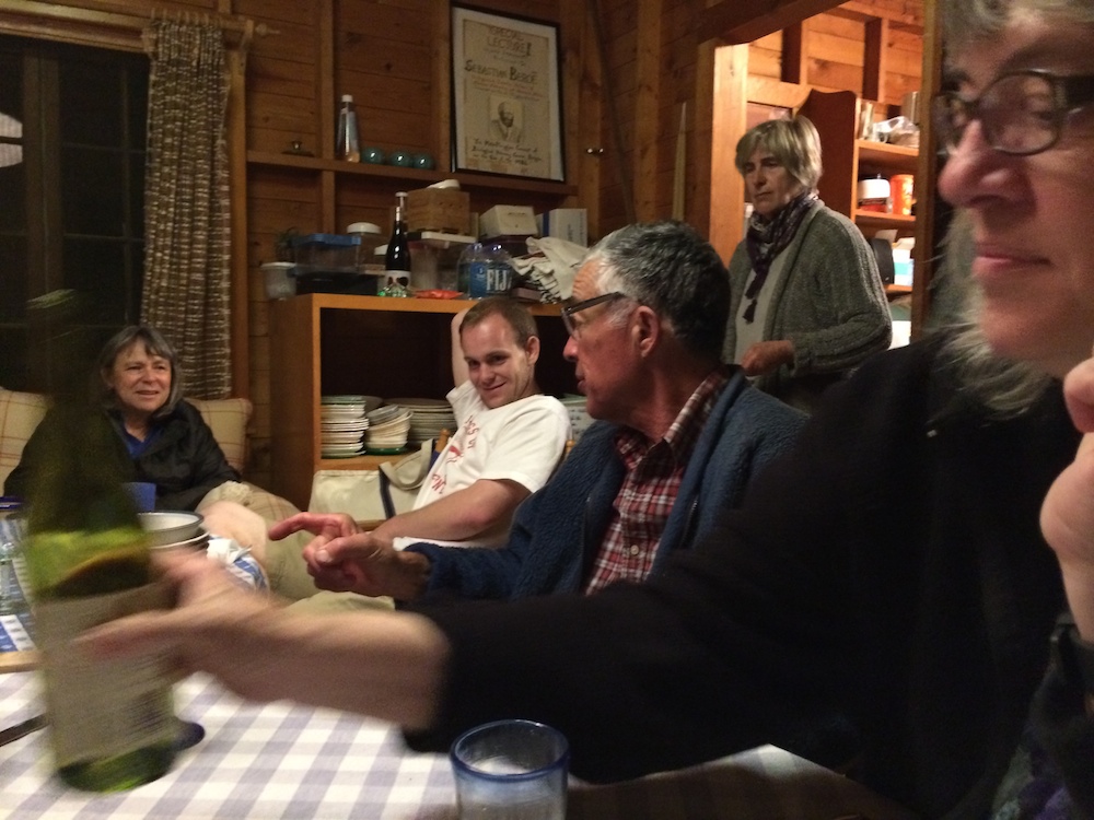 dinner - Mandy, Sid -- Dave -- Mandy, Ben, Sid, Emily -- Signhild serves her rhubarb cobbler