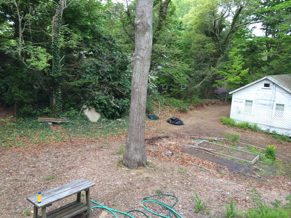 getting ready to go -- climb up ladder to look at nest (mother isn't happy) -- they all left later that morning