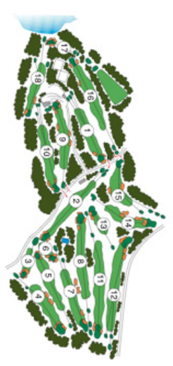Golf course layout - the path described above goes around hole 6, past the beginning of hole 7, then across holes 8, 11 and 12.