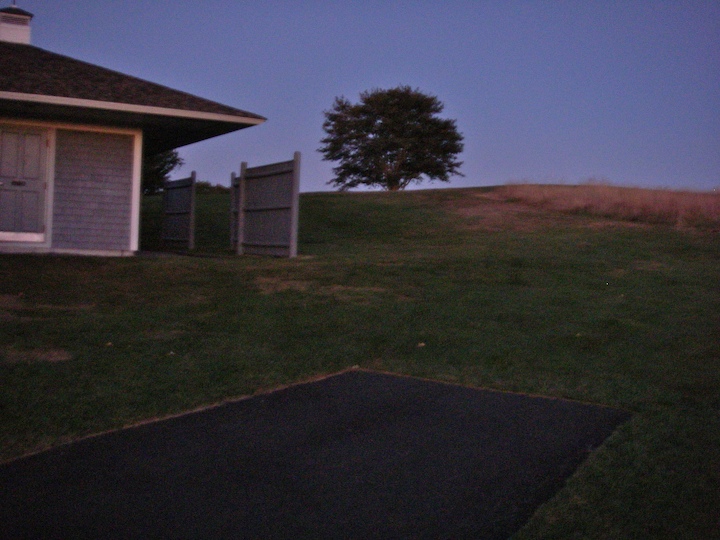 When the path comes to an end, 45° to the left is a field house. 20° to