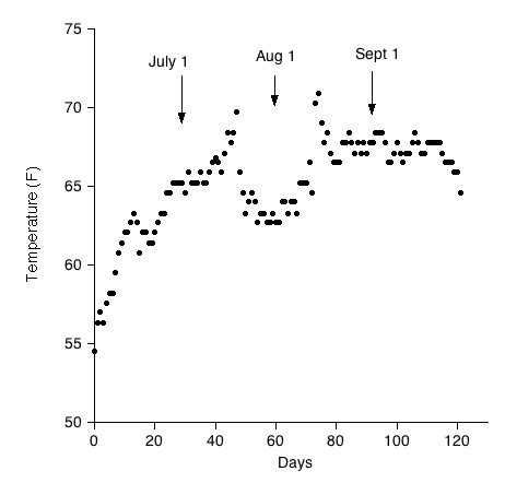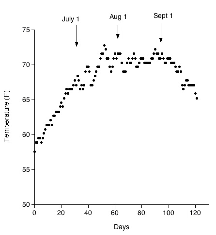 water temperature graph for 2005, starting from June 1