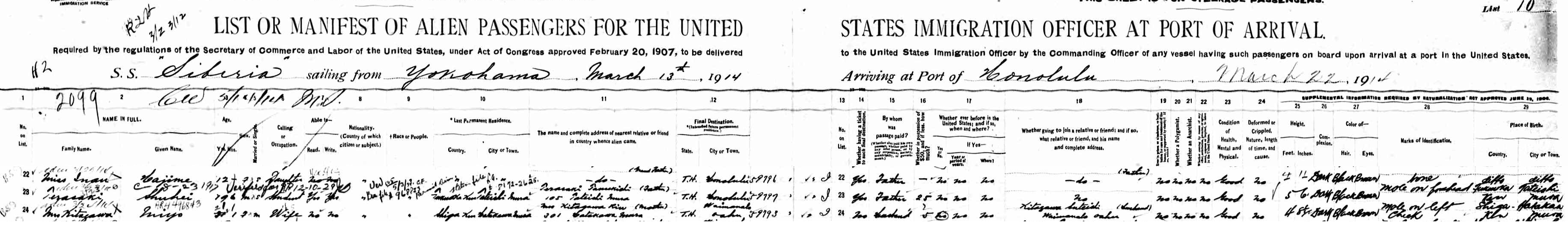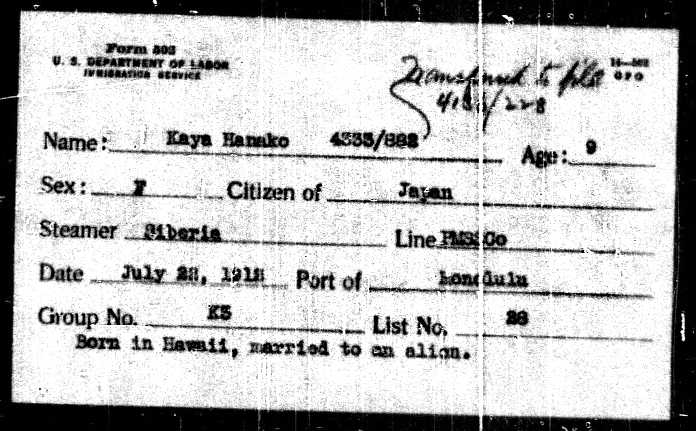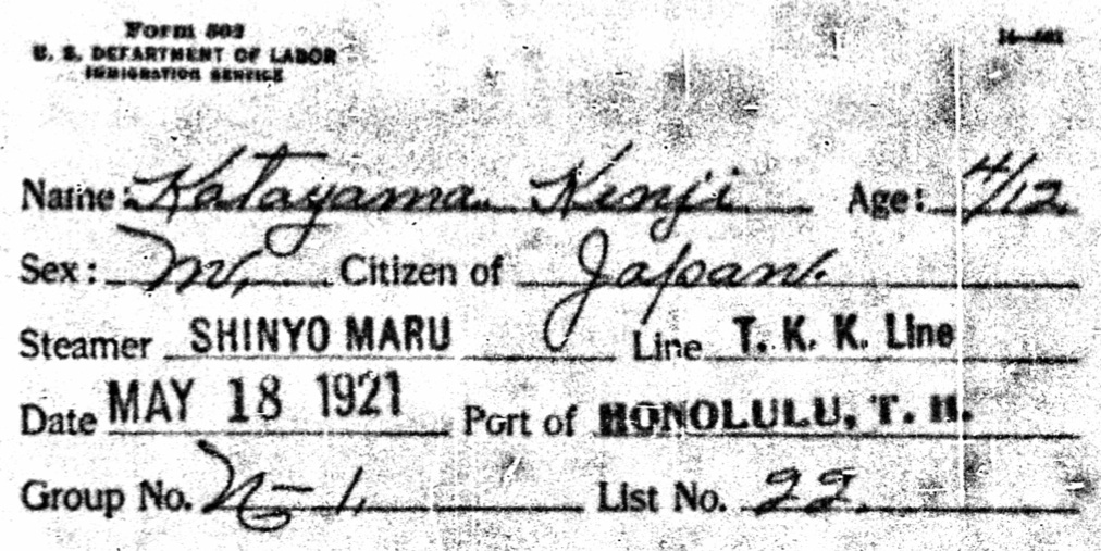 children Chester (Aug 15, 1918; Hiroko), Kenji (born ~1920 in Japan? -1921 Hawaii - 1925 Hawaii - 1935 Hawaii), Hideo
