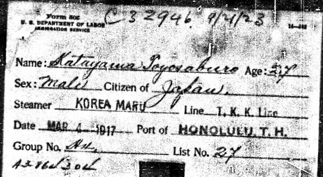 (possibly in childbirth). Shuhei was adopted by his uncle Yoshii. Asakichi re-married, apparently Toyosaburo didn't get along with his step-mother, possibly that is why he moved to the US (from Ken Katayama).