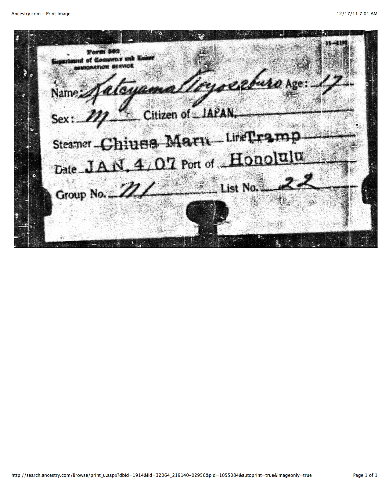 in Honolulu Mar 23, 1912) (married to Kiyokusu, Sept 11, 1875 - Nov 26, 1941)