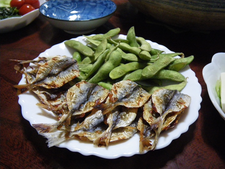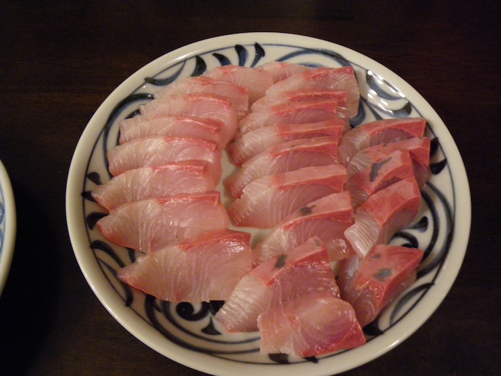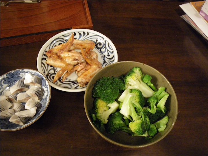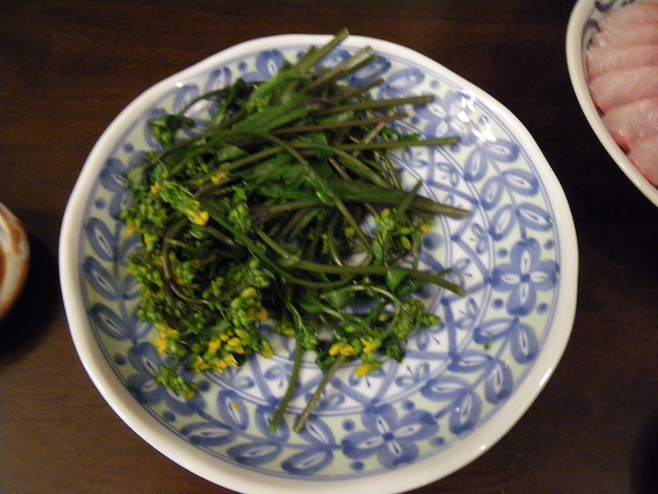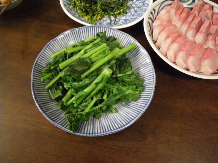 Chiba's house - broccoli rabe from Emiko's garden - sashimi - pickled