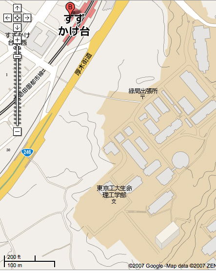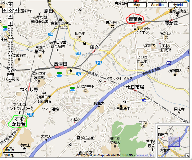 Train journey - from aobadai (circled in red) to suzukakedai (circled in green)