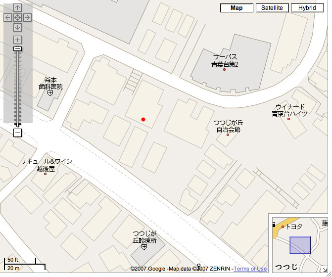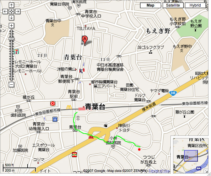 walk to aobadai station - in green; red dot is apartment