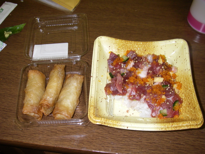 dinner - small egg rolls and chirashizushi