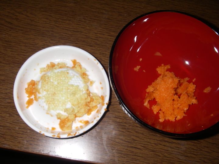 salad: grate carrot - grate ginger - add