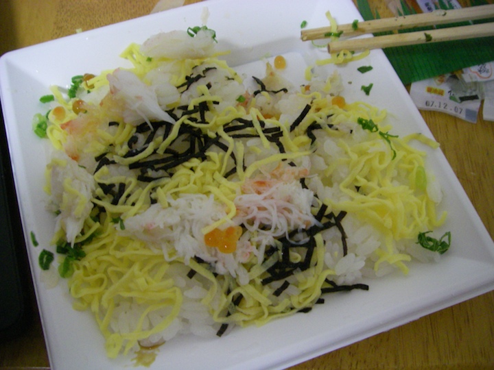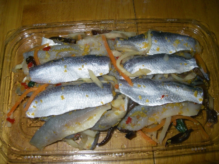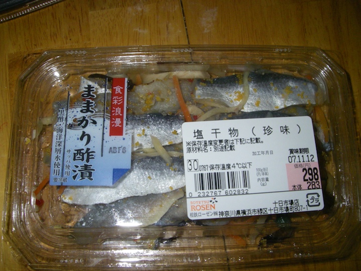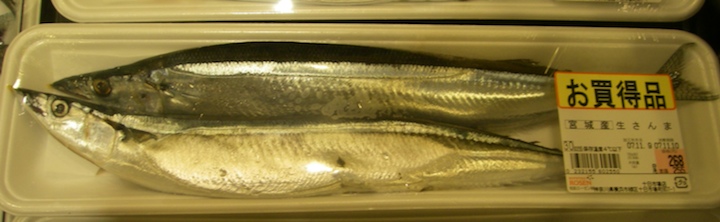 sanma (a seasonal fish) - squid - some kind of mollusk - another mollusk -