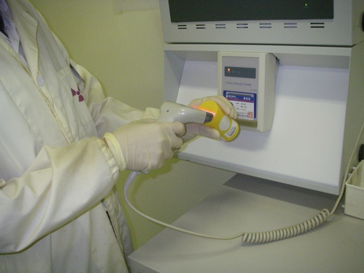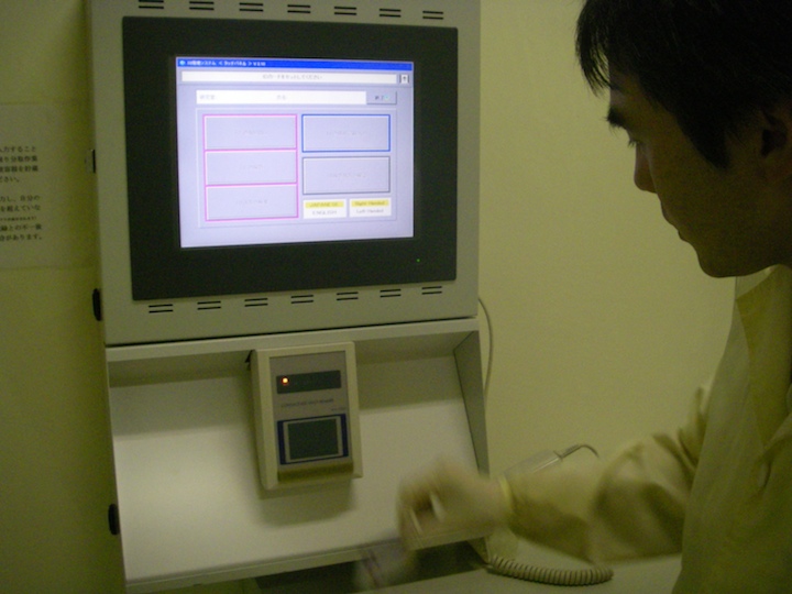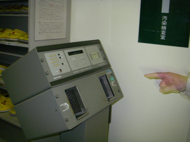in radioactive lab - when finished, pass the hand test 1 - 2
