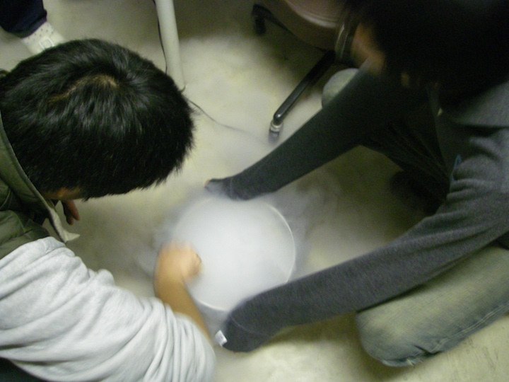 liquid nitrogen sorbet (grapefruit juice): stirring --